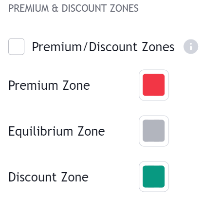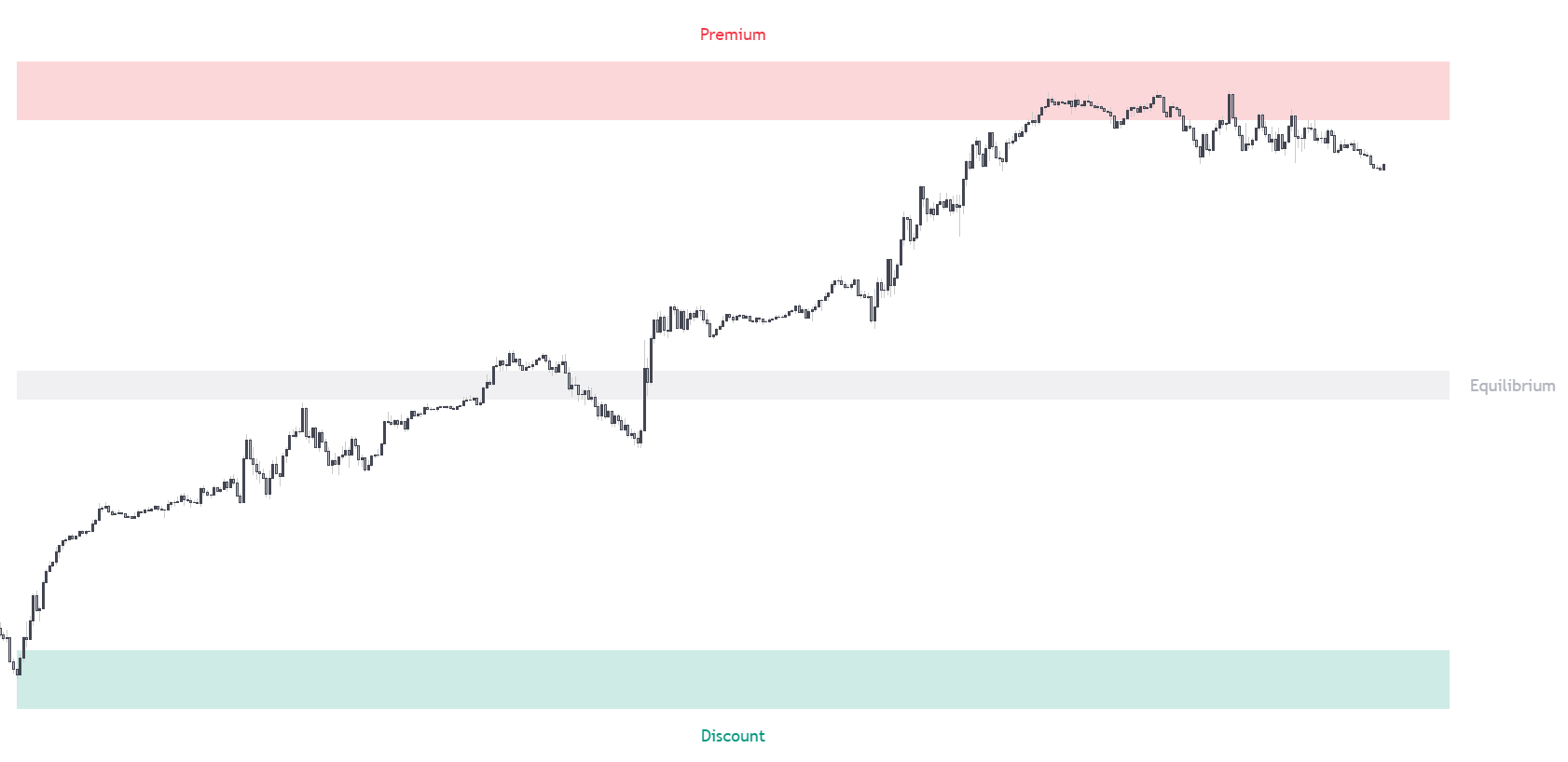 Premium & Discount zones highlight three specific price areas, one upper area (premium), one central area (equilibrium), and one lower area (discount).