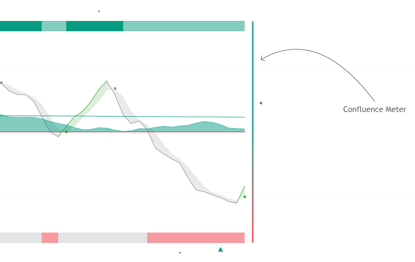 The meter giving a higher measurement would be indicative of a more significant bullish confluence, that is most elements are indicative of a bullish trend, while a lower measurement would be indicative of a more significant bearish confluence.