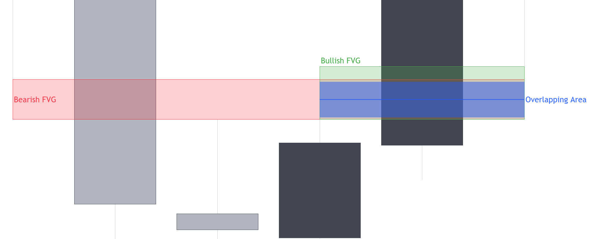Fair Value Gaps (FVG) are market imbalances formed from a sequence of three candles where the outer candle wicks fail to overlap the central candle body, the range between the wicks highlight a Fair Value Gap.